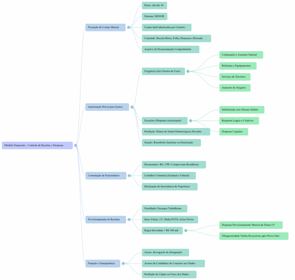 • Transparência para Candidatos: As informações financeiras contidas neste módulo serão disponibilizadas aos candidatos aprovados no concurso público, na fase de escolha do cartório. No entanto, é proibida a extração de cópias, fotos ou qualquer reprodução desses dados.