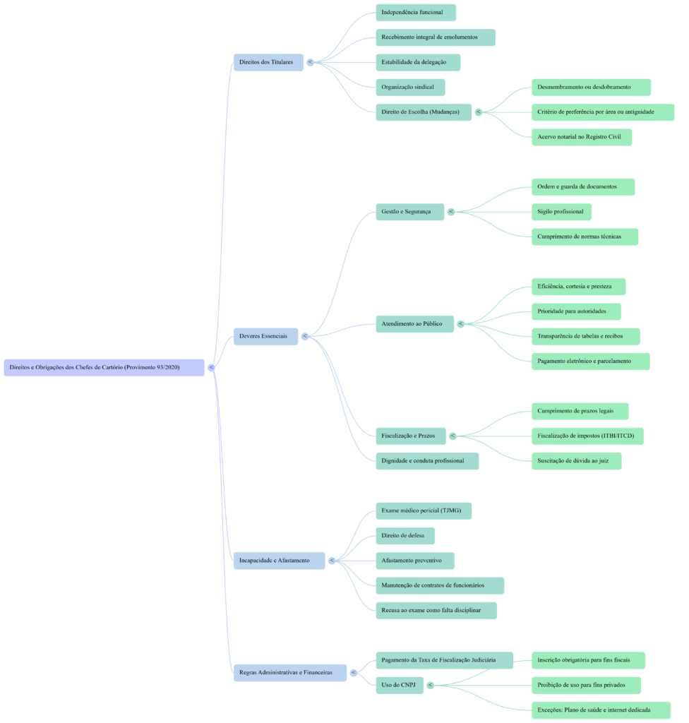 • Direitos e Prerrogativas: Garantia de independência funcional, estabilidade no cargo (perda apenas via processo administrativo) e direito ao recebimento integral dos emolumentos.