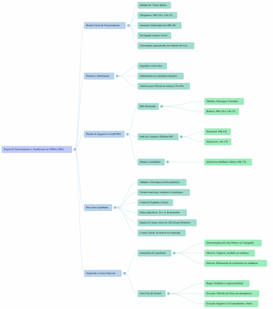 - Transparência: O horário de atendimento deve ser informado ao Juiz Diretor do Foro e deve estar claramente afixado em local visível na parte externa do cartório.